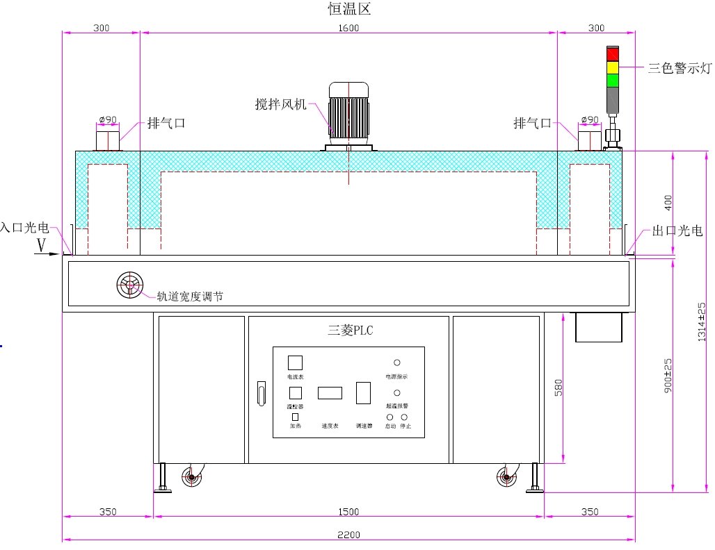2、發(fā)熱管安裝在工件上方