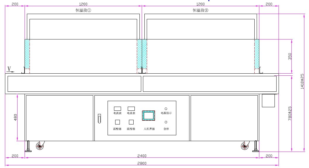 3、溫區(qū):2段(循環(huán)風(fēng)方式加熱)